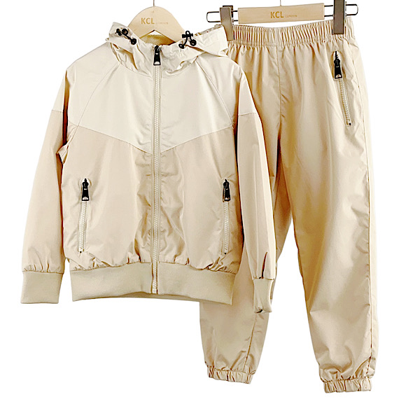 Unisex Beige Chevron Zip Tracksuit Set 2-14