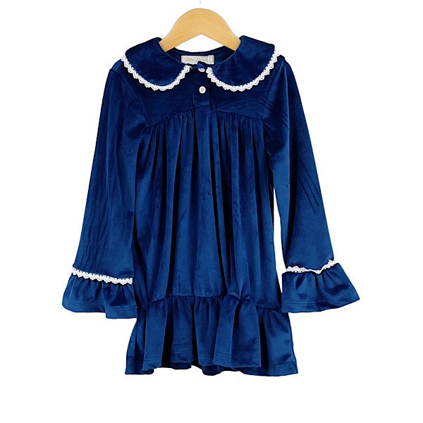 Navy Velour Lace Ruffle Xmas Dress 2-10