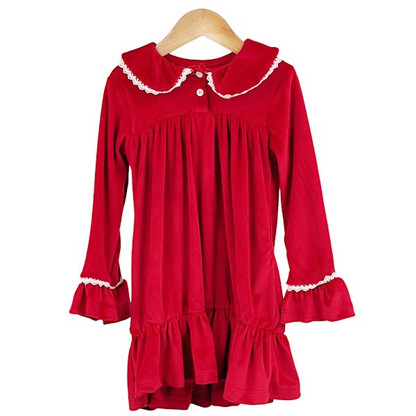 Red Velour Lace Ruffle Xmas Dress 2-10