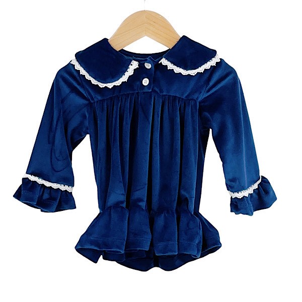 Navy Velour Lace Ruffle Xmas Dress 6-24M