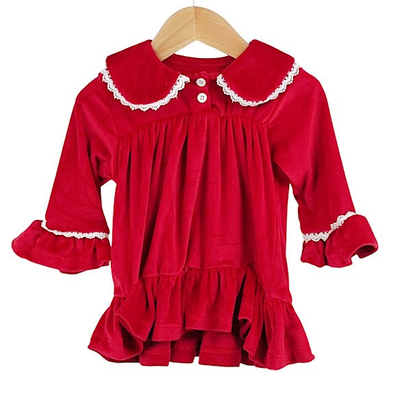 Red Velour Lace Ruffle Xmas Dress 6-24M