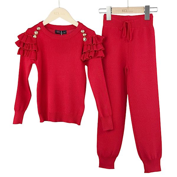 Red 2PC Ruffle Frill Co-ord Lounge Set 4-13