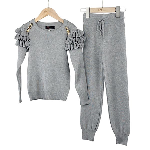 Grey 2PC Ruffle Frill Co-ord Lounge Set 4-13