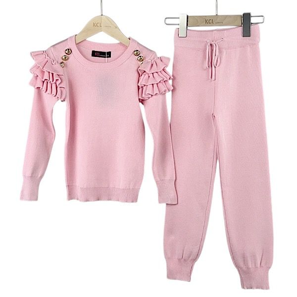 Pink 2PC Ruffle Frill Co-ord Lounge Set 4-13