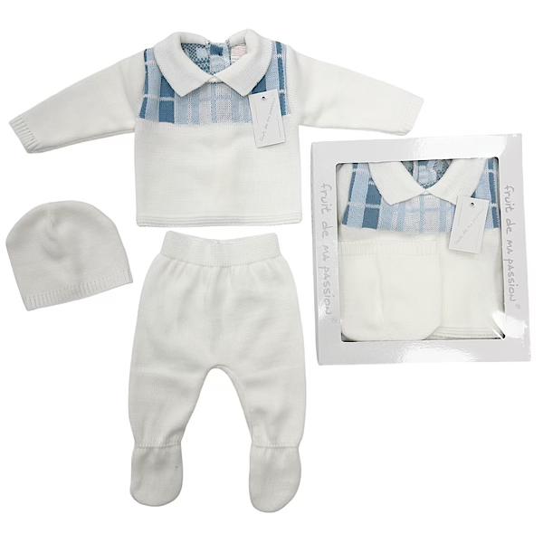 Ivory/Blue Contrast Plaid 3PC Gift Box Set NB