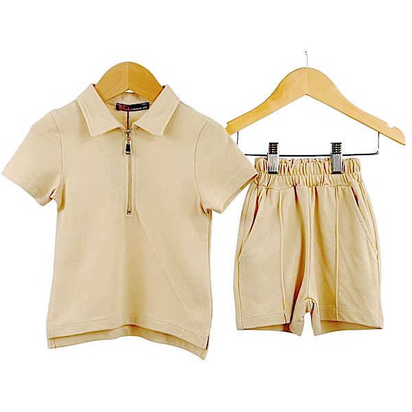 Beige Co-ord Zipped T-Shirt & Shorts Set 12-24M