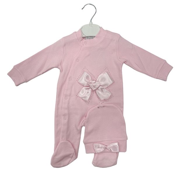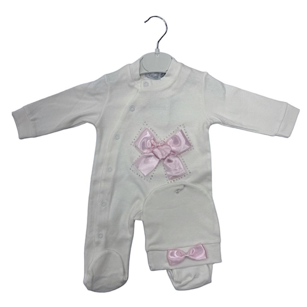 Ivory & Pink 2PC Bow Baby Grow 0-9M