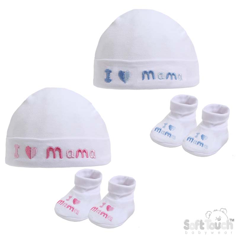 Pack of 2 'I ♡ Mama' Beanie & Booties Set 0-3M