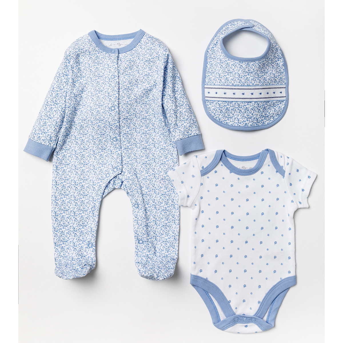 Blue & Ivory Floral 3PC Layette Set NB-6M
