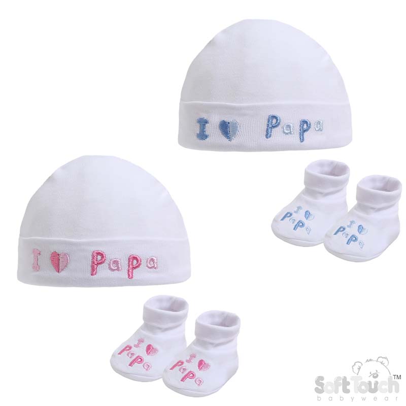 Blue & Pink 'I ♡ Papa' Beanie & Booties Set NB