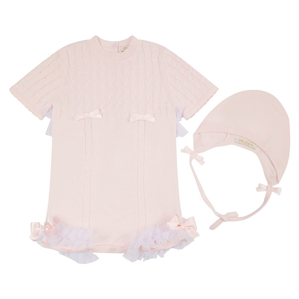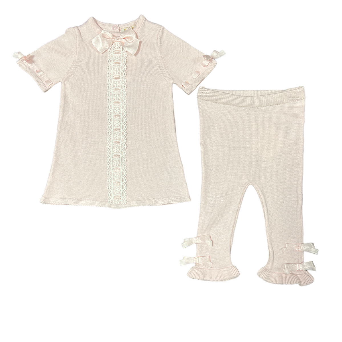 Baby Little Dreams Pink Ivory Knitted Spanish Ribbon Bow Legging Set 3-24M