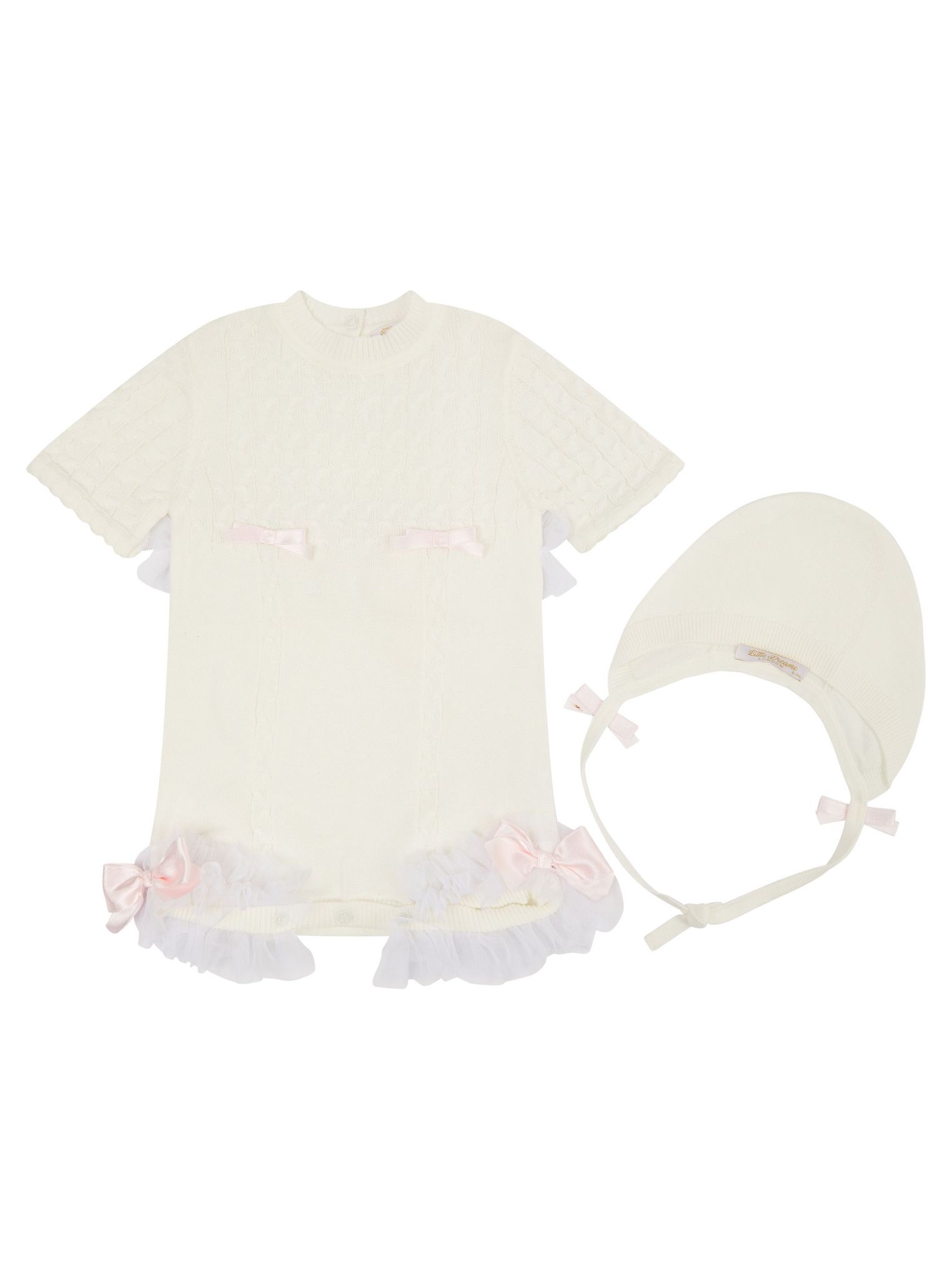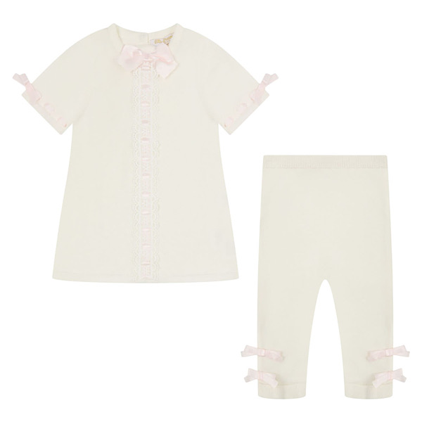 Baby Little Dreams Ivory Pink Knitted Spanish Ribbon Bow Legging Set 3-24M