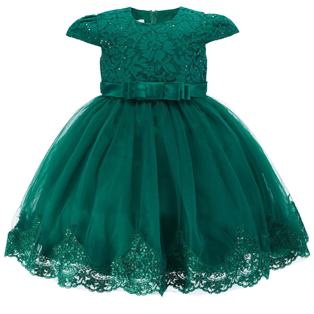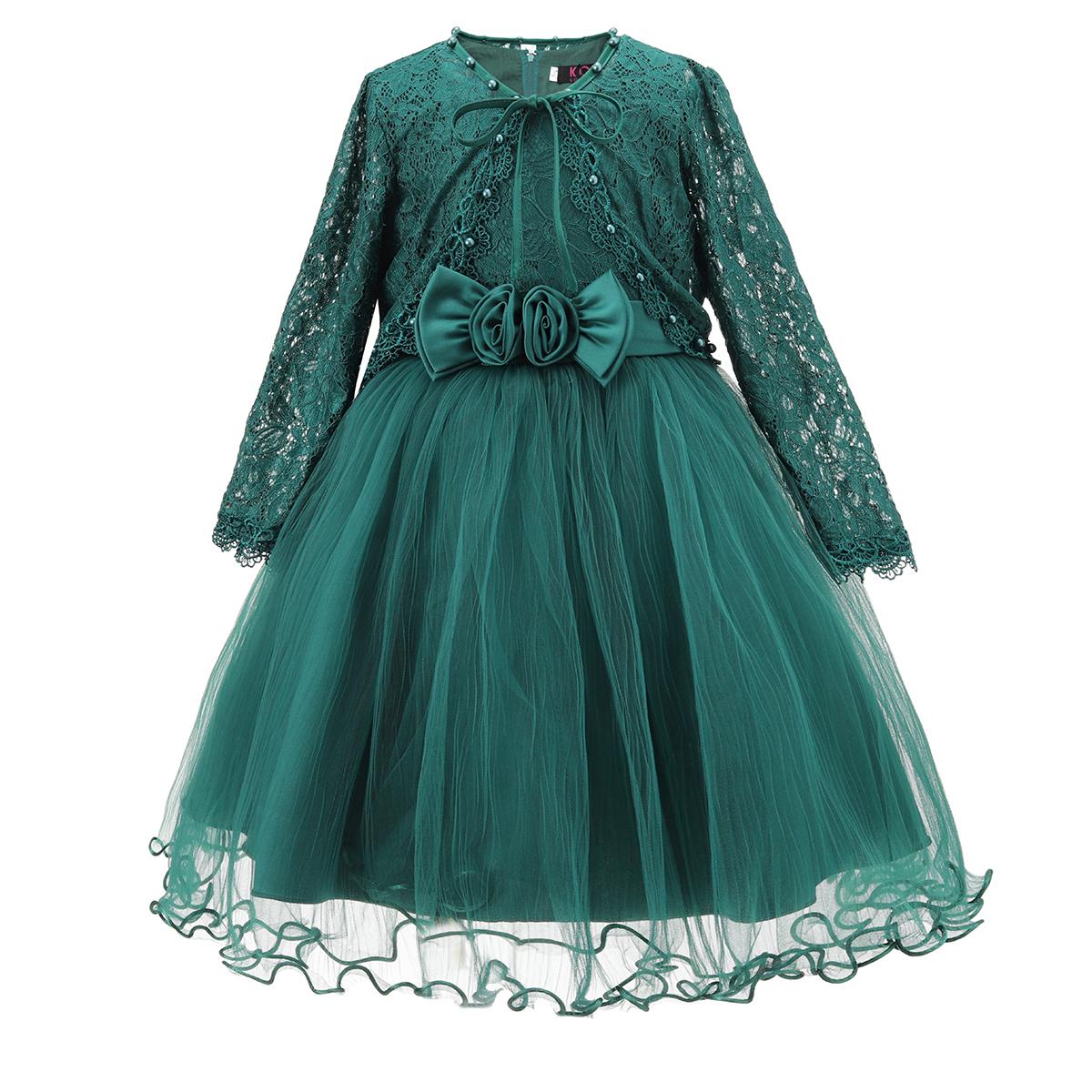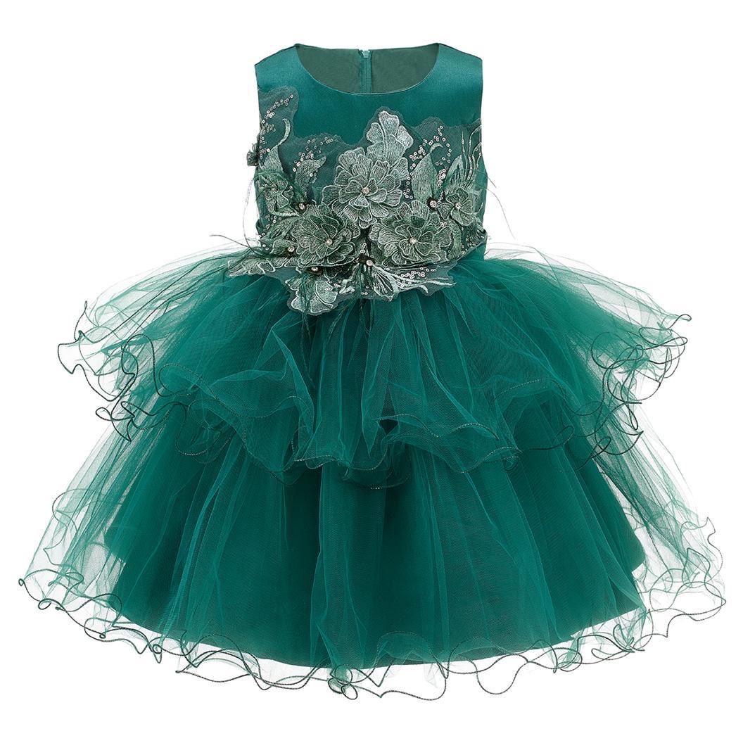 Green Princess Rose Motif Peplum Party Dress 2-13 Years