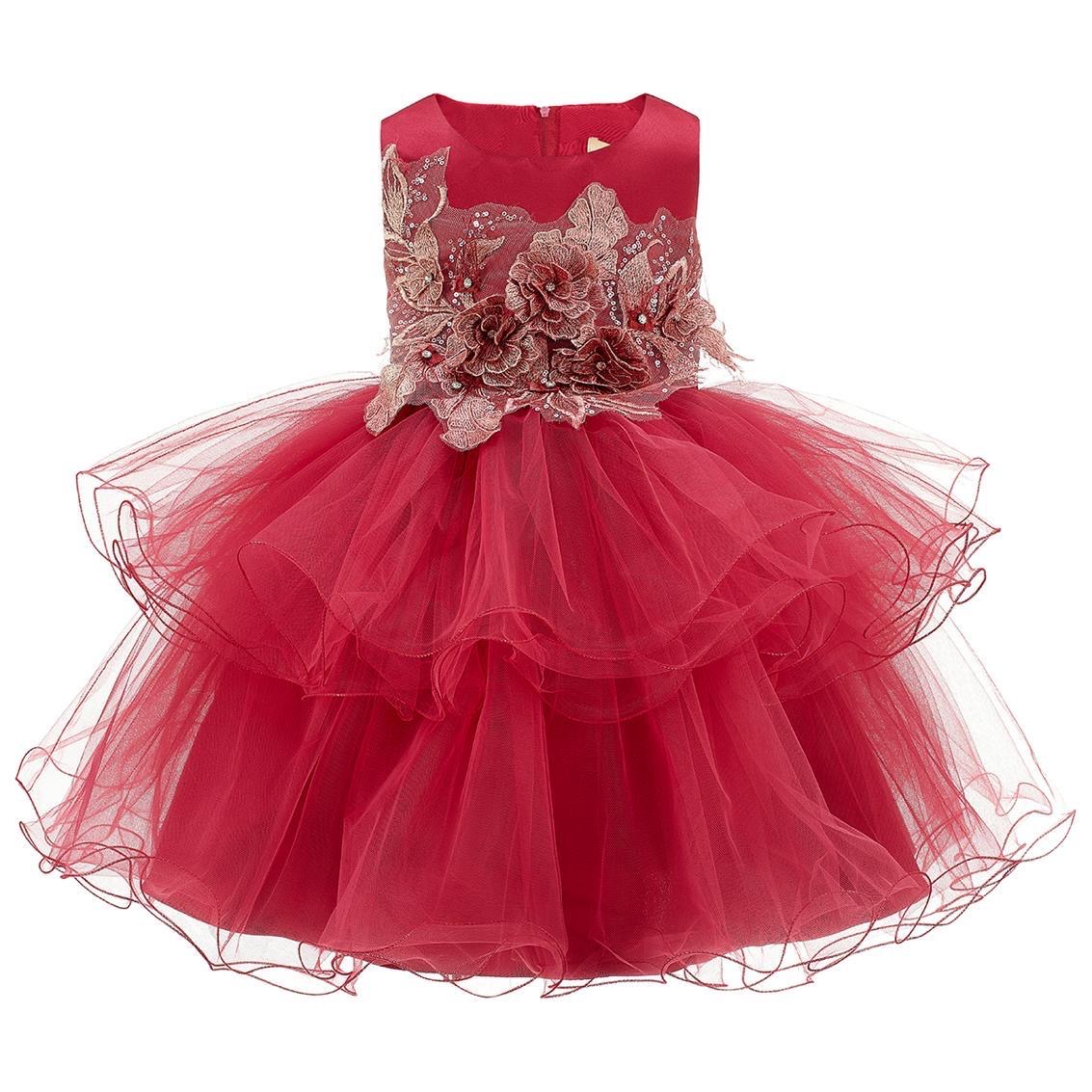 Red Princess Rose Motif Peplum Party Dress 2-13 Years