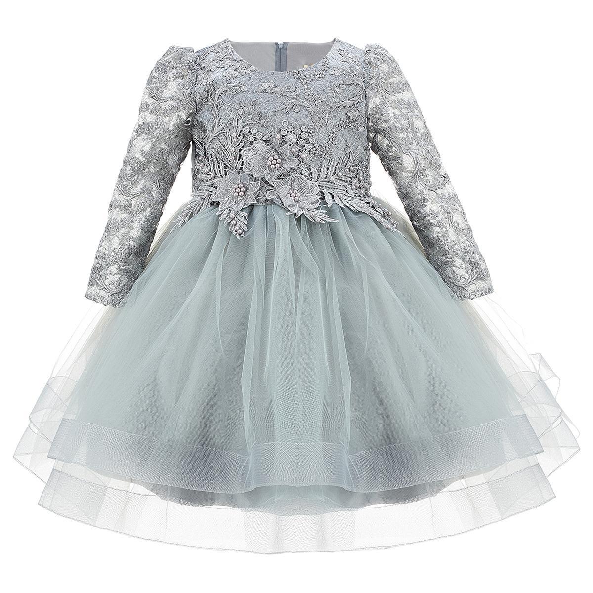 Grey Princess Rose Motif Long Peplum Party Dress 2-13 Years