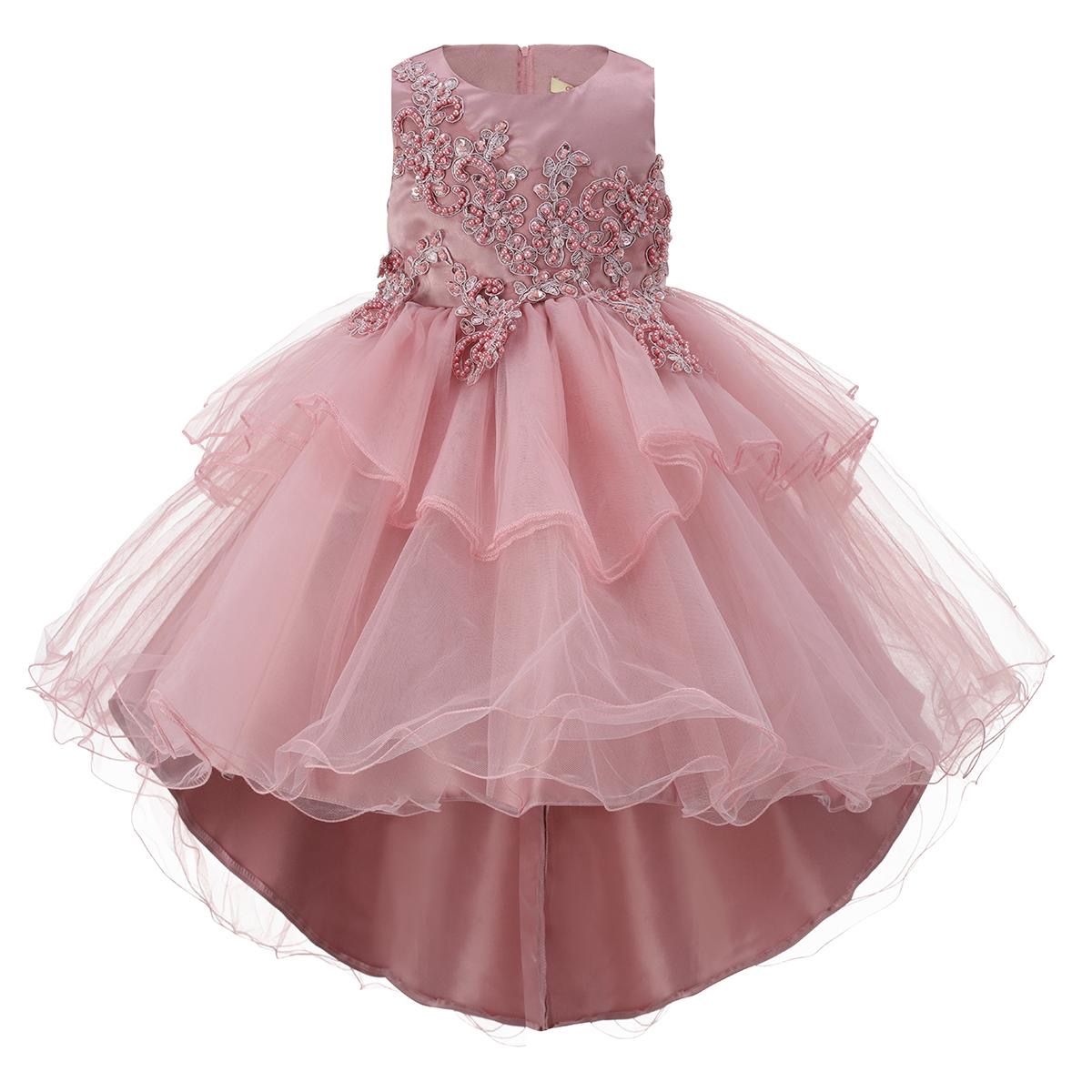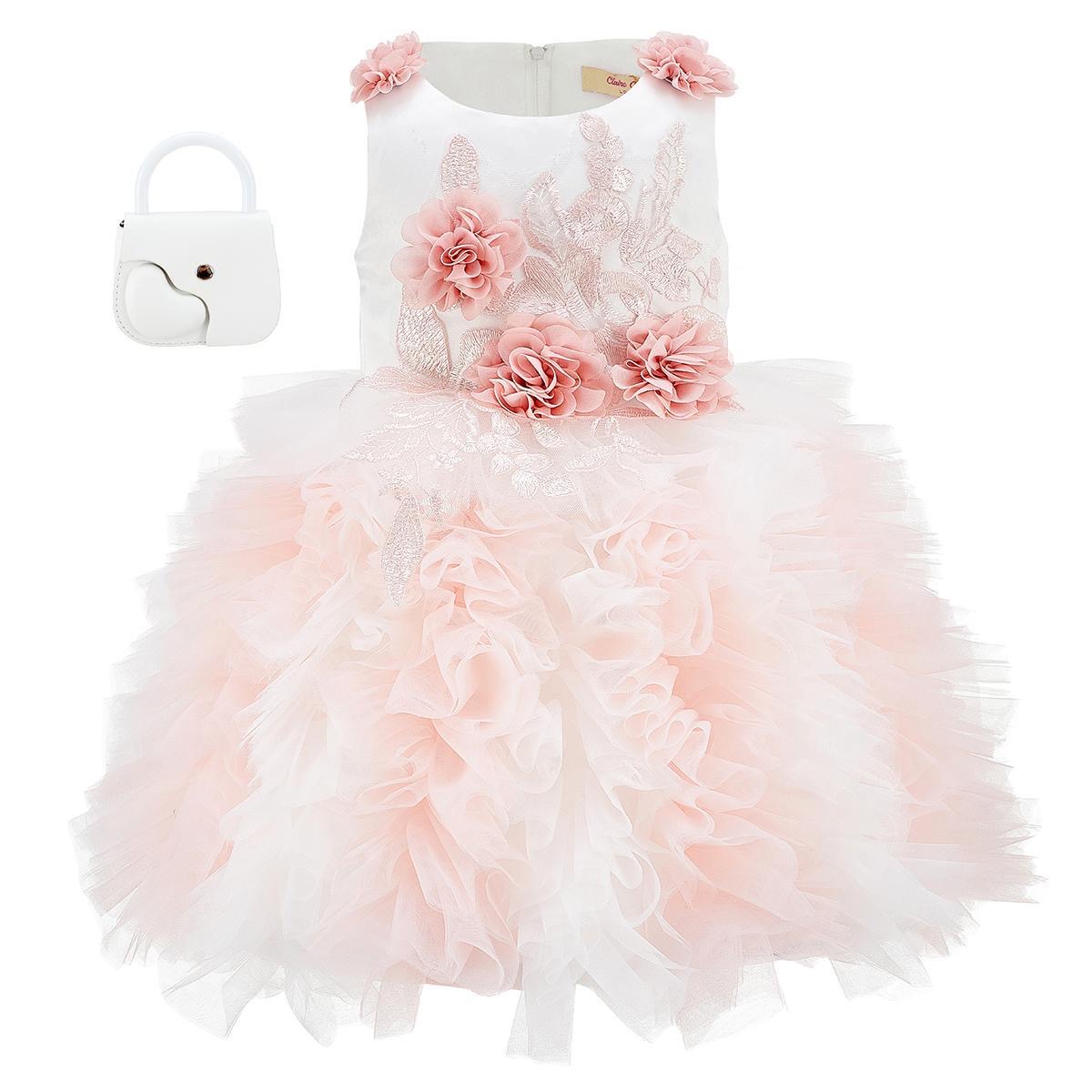 Pink Princess Rose Motif Long Peplum Party Dress 2-13 Years