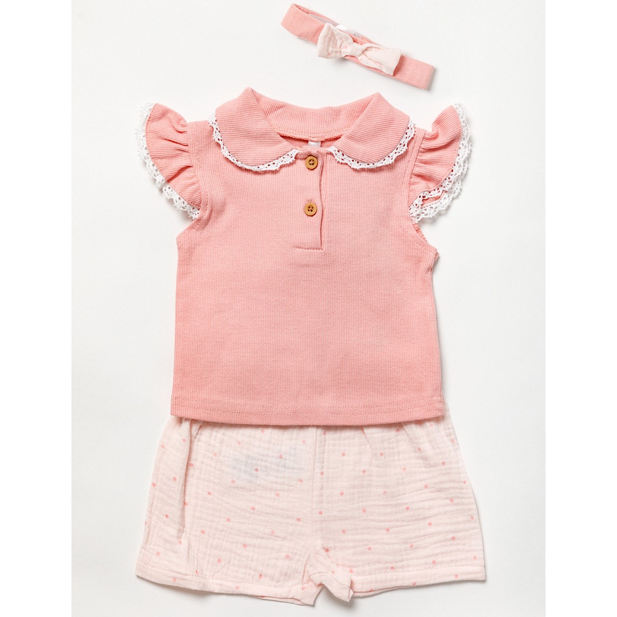 D/Pink Laced Collar Top & Shorts 3PC Set 3-24M
