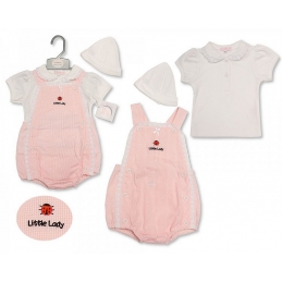 'Little Lady' 3PC Dungaree Set NB-6M