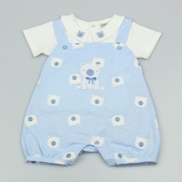 Baby Blue Polar Bear Dungaree Set 0-9M