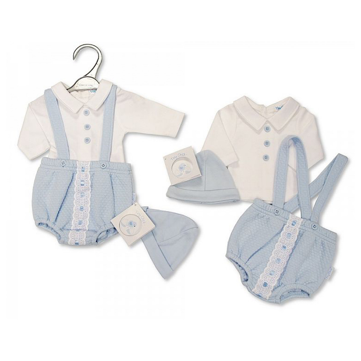 B/Blue 3PC Woven Ribbon Suspender Shorts Set 3-8lbs