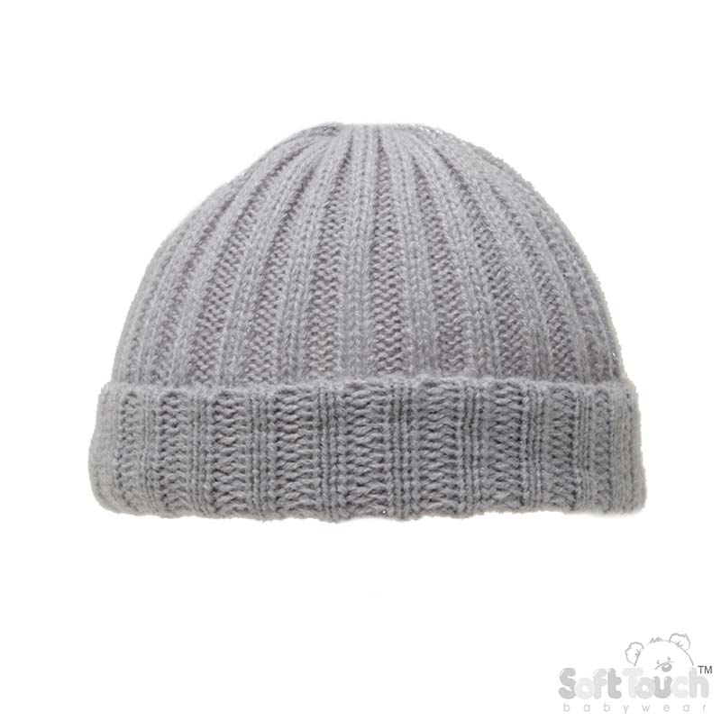 Grey Knitted Ribbed Beanie Hat (NB)