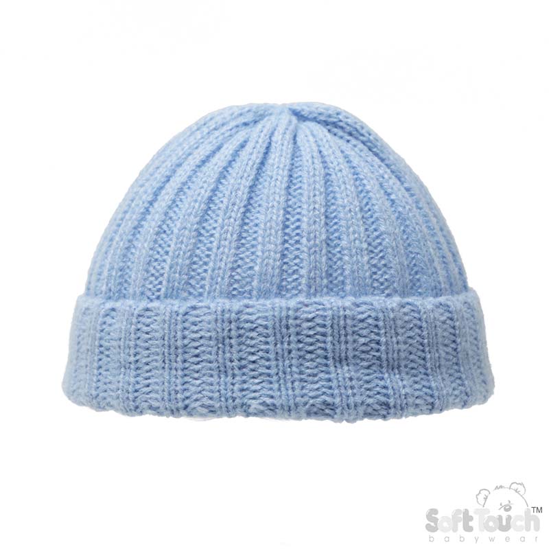Baby Blue Knitted Ribbed Beanie Hat (NB)