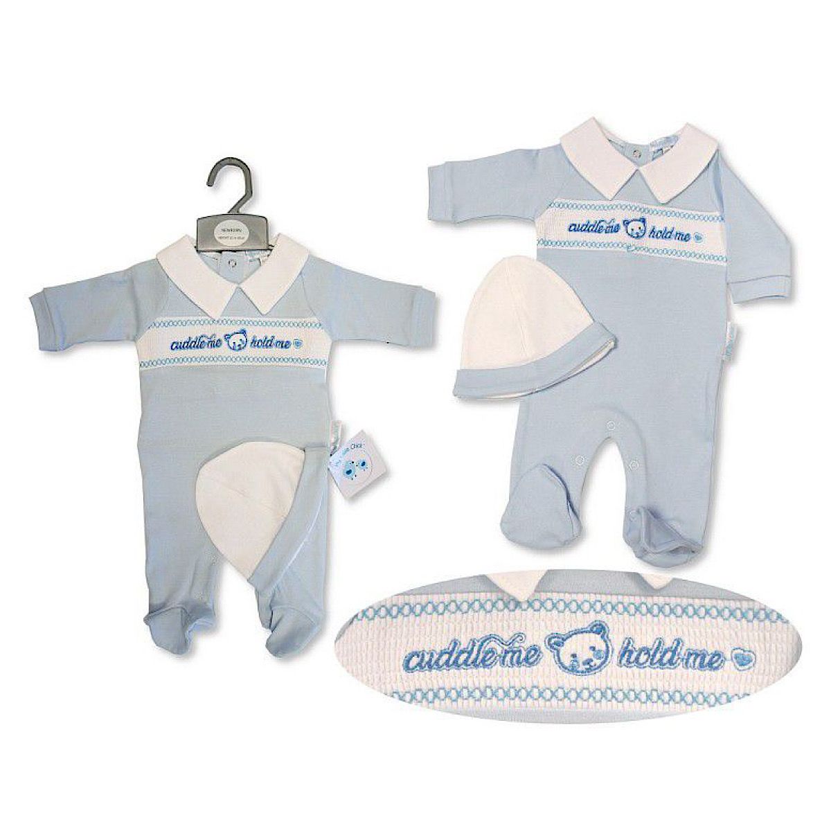 Blue 'Cuddle Me' Smocked Sleepsuit & Hat NB-6M