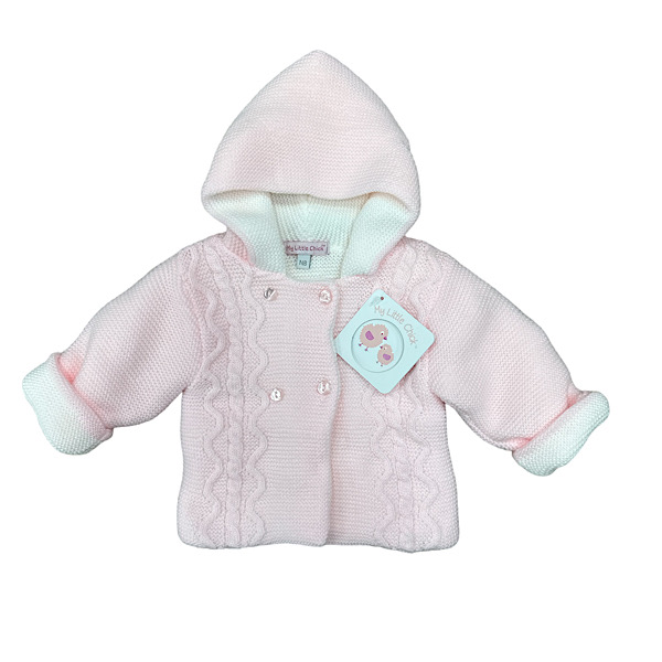 Pink Cable Wave Knit Woven Coat NB-6M