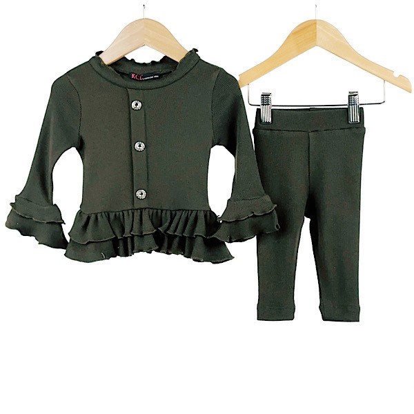 Khaki Green Peplum Frill 2PC Co-ord Set 12-24M