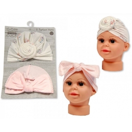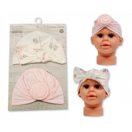 Set of 2 Bow & Floral Turban Hats 0-6M