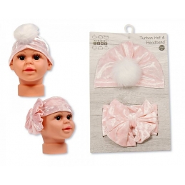 PomPom/Bow Hat & Headband Set 0-6M