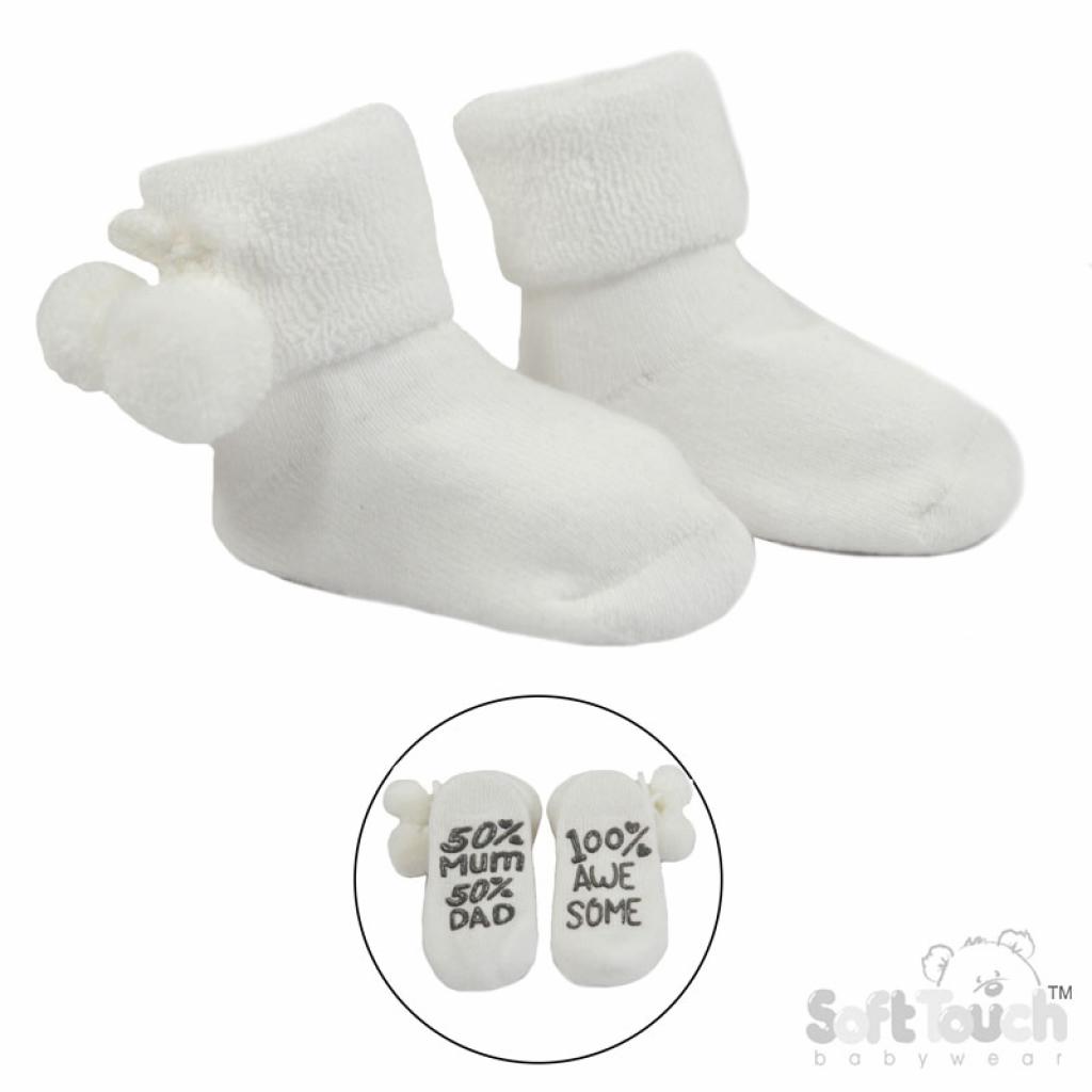 Ivory No Slip PomPom '100% Awesome' Socks NB-12M