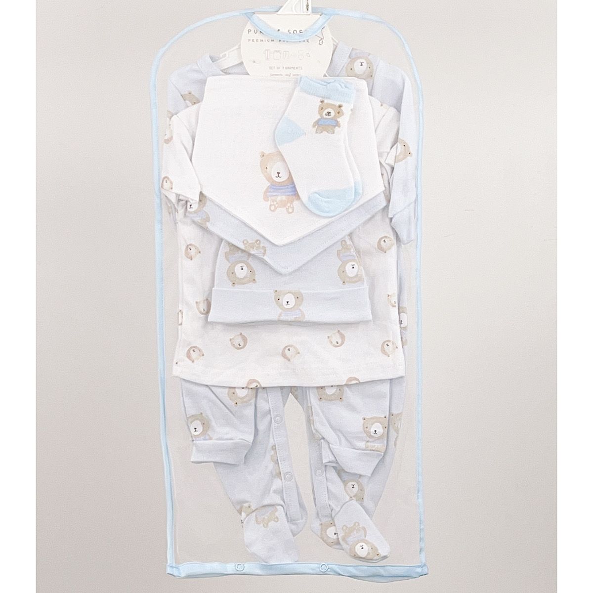Blue Teddy Bear Print 6PC Layette Set 0-6M