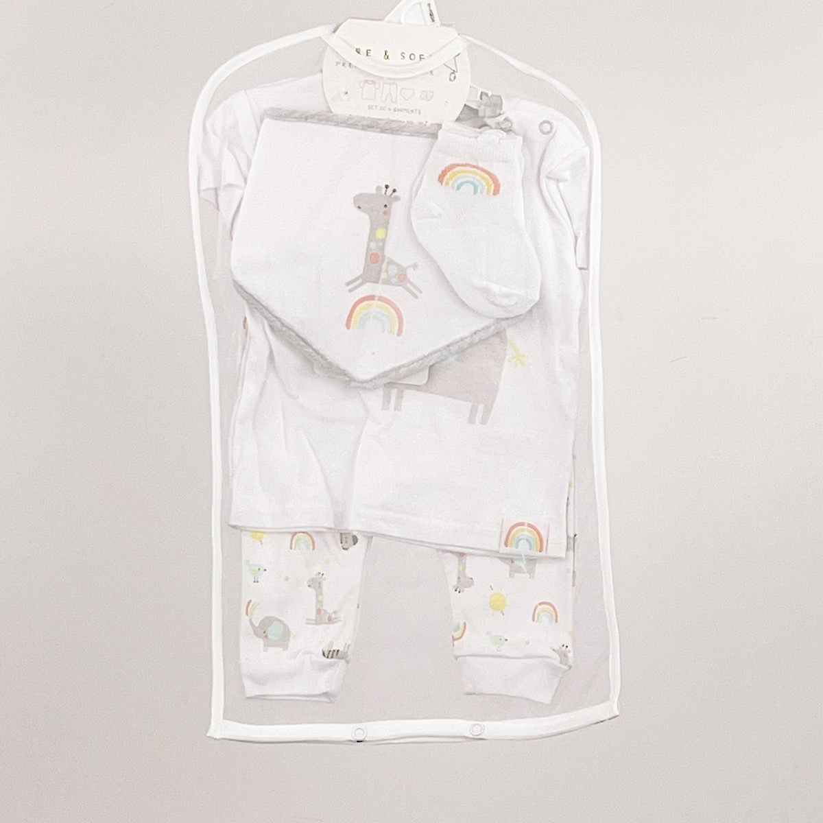 Animal & Rainbow Print 4PC Layette Set 0-6M