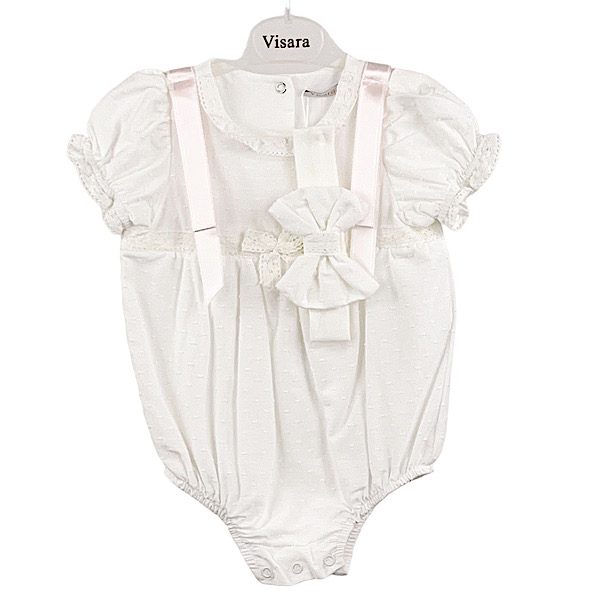 Ivory/Pink Laced Romper & Bow Headband 3-18M