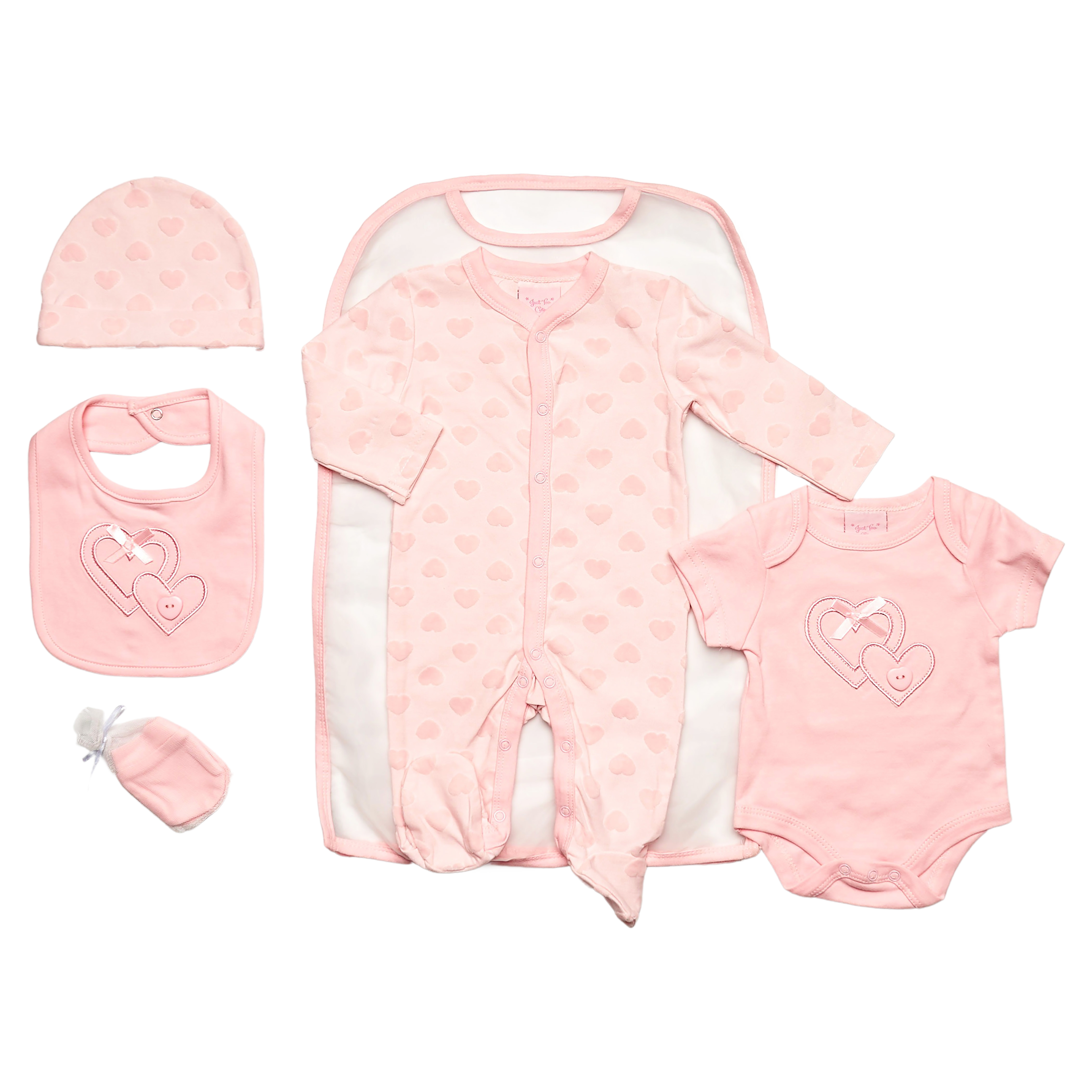 B/Pink Jacquard Heart 5PC Layette Set 0-6M