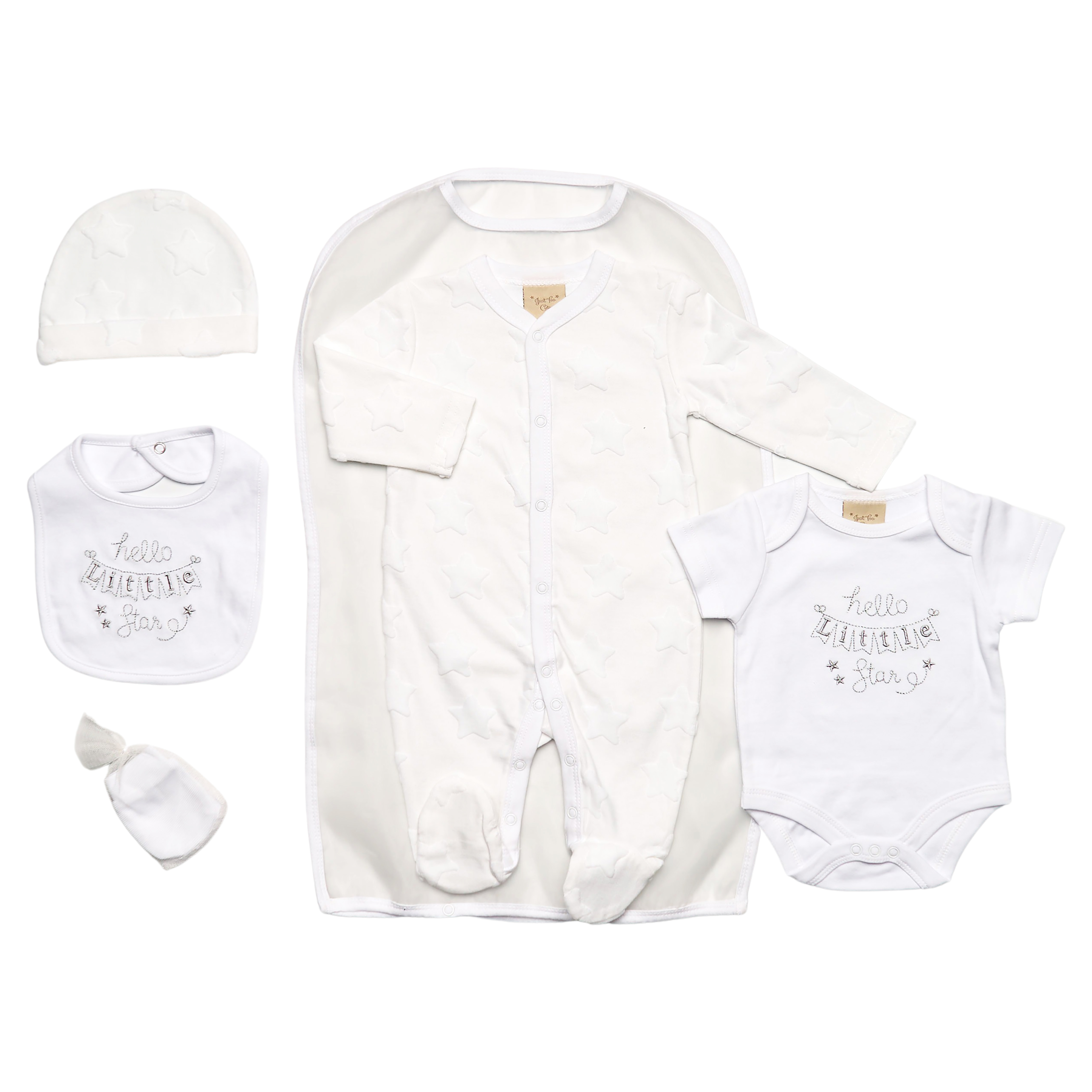 White Jacquard 'Hello Little Star' 5PC Layette Set 0-6M