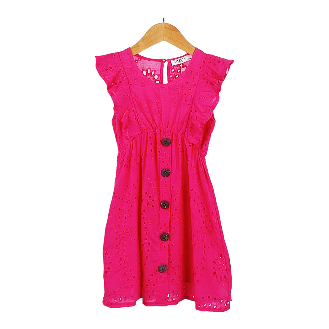 H/Pink Ruffle Laser Cut Summer Dress 4-14