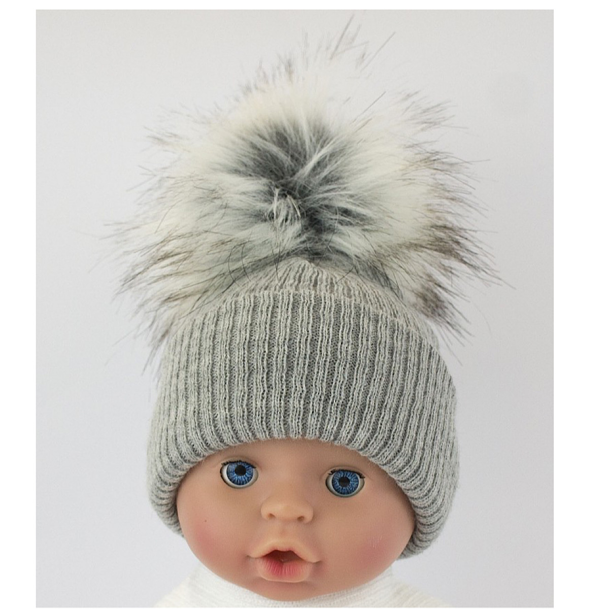 Grey Ribbed Pom Pom Beanie Hat (MED/LARGE)