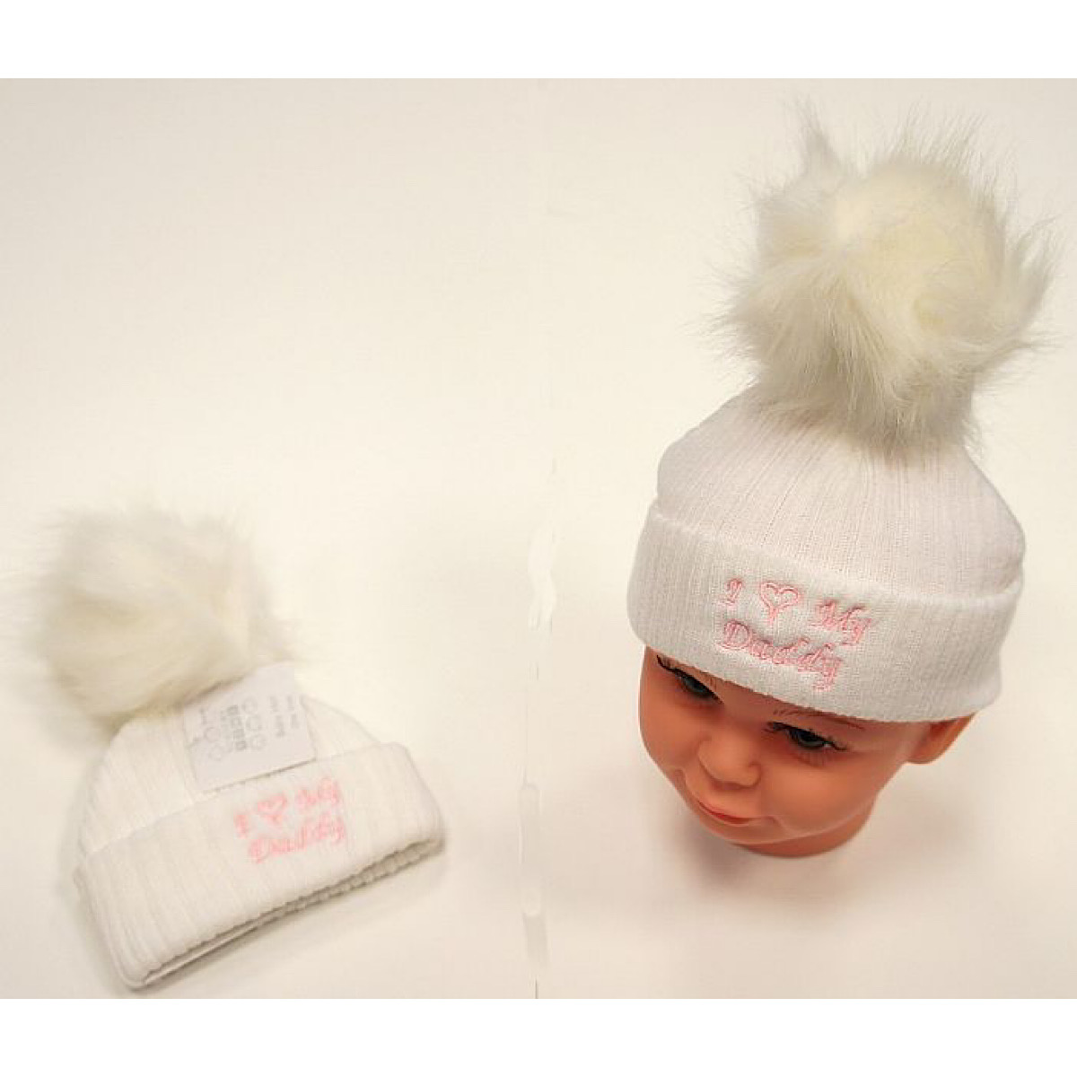 Ivory 'I ♡ My Daddy' Pom Pom Hat