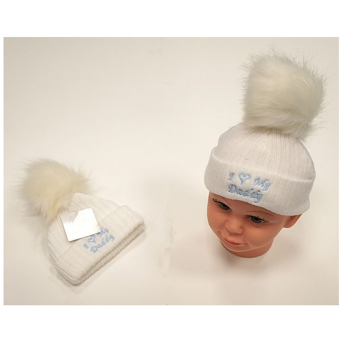Ivory & Blue 'I ♡ My Daddy' Pom Pom Hat