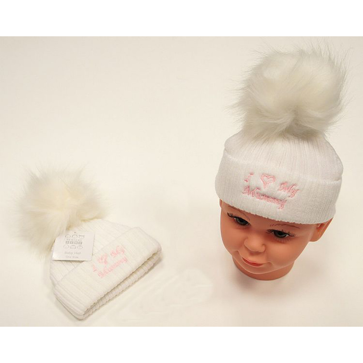 Ivory & Pink 'I ♡ My Mummy' Pom Pom Hat