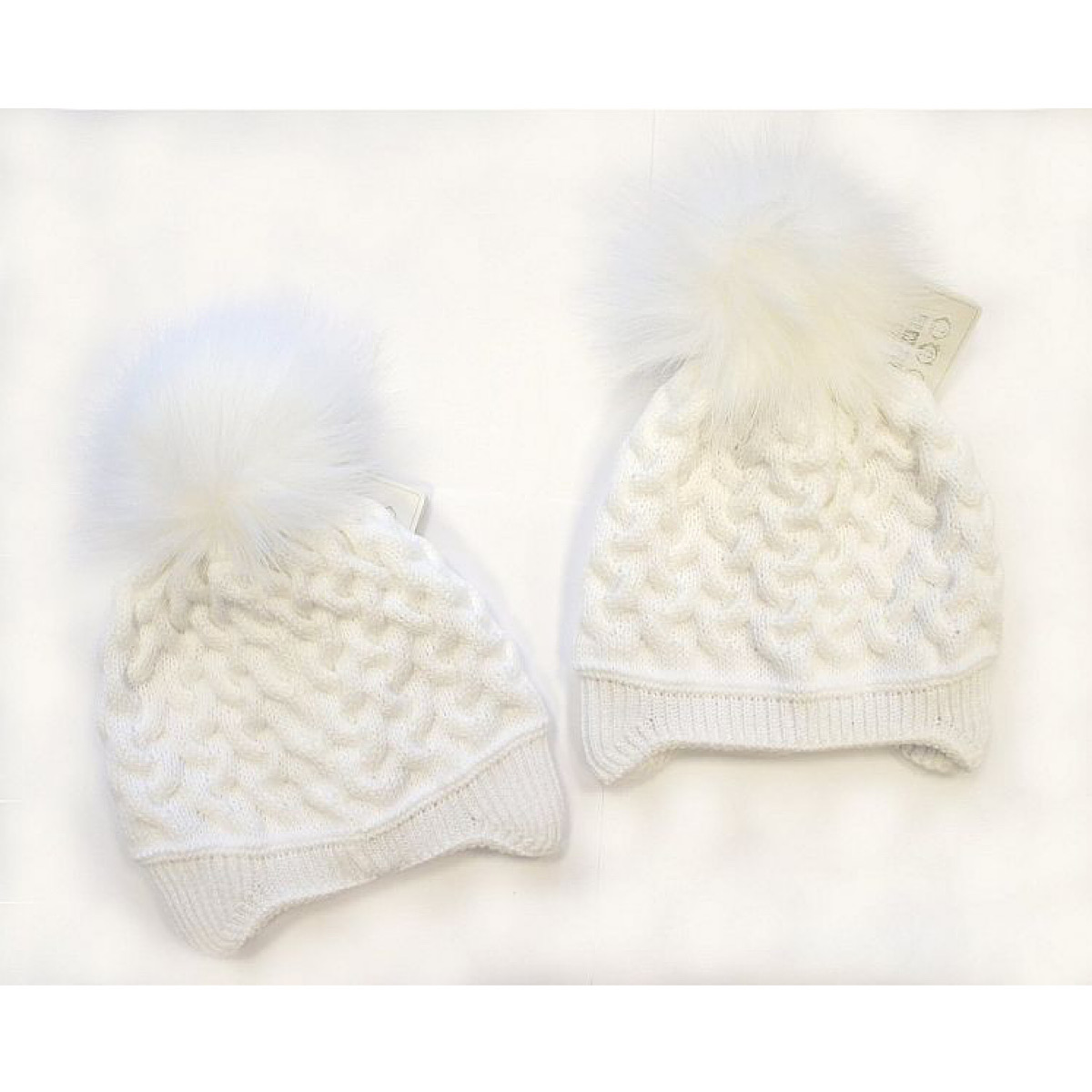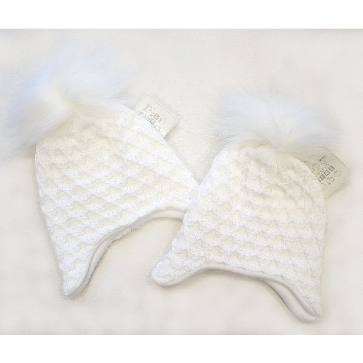 Ivory Knitted Pom Pom Trapper Hat 0-18M