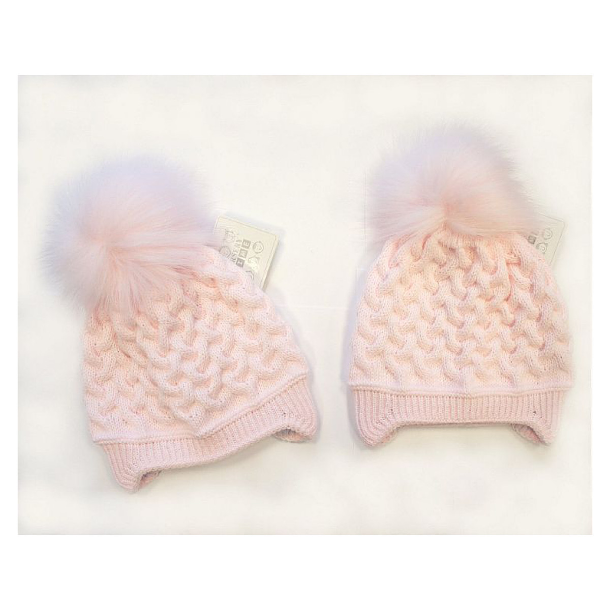 B/Pink Knitted Pom Pom Hat 0-18M