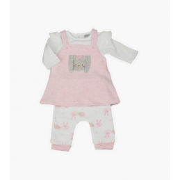 B/Pink Bunny 3PC Pinafore Dress Set 0-9M