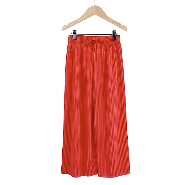 Red Plissé Pleated Wide-Leg Trousers 4-14