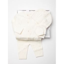 Ivory Perforated Bow 4PC Layette Set NB-6M