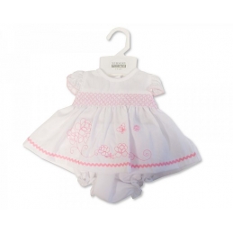Pink & White Floral Smock Dress 3-8lbs