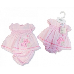 Pink Embroidered Floral Dress Set 3-8lbs