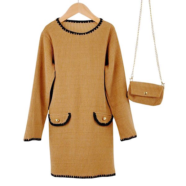 Camel Rib Contrast Jumper Dress & Bag 4-14